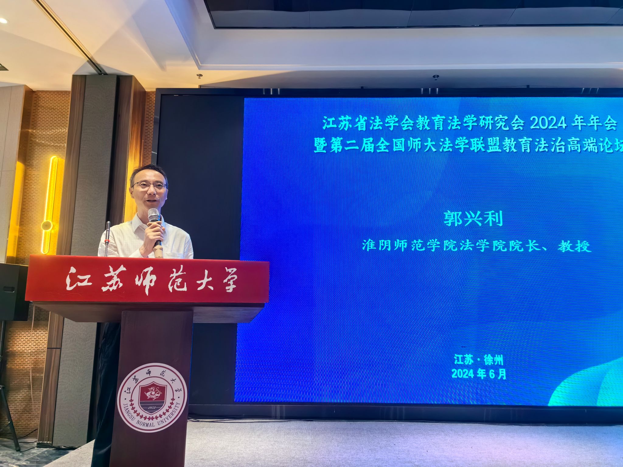 2024年6月9日,江苏省法学会教育法学研究会2024年年会暨第二届全国师大法学联盟教育法治高端论坛在江苏省徐州市举办。云顶国际yd222线路检测中心经理郭兴利教授应邀参加会议,并作《论本科毕业条件设置中的平等权》的主旨发言。