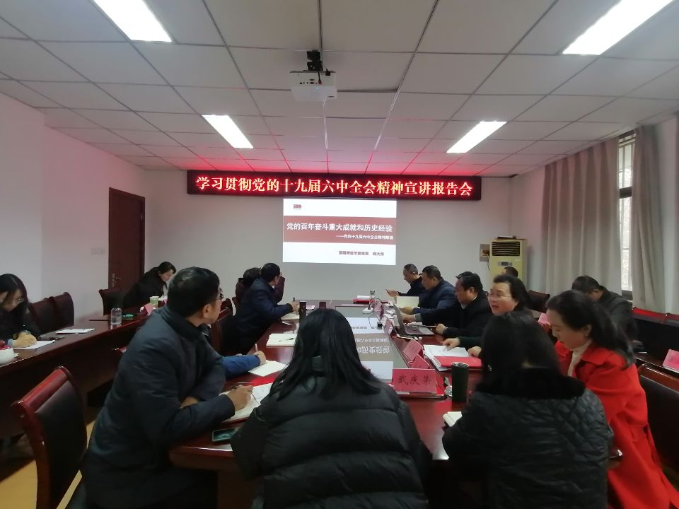 阎大伟做了题为《党的百年奋斗重大成就和历史经验》的专题报告,紧紧围绕决议的时代背景、坚持唯物史观和正确的党史观、一个主题与四个时期、第三次飞跃和“两个确立”、历史意义和基本经验五个方面深入浅出的讲解了习近平新时代中国特色社会主义思想的精髓。着重解读了第三次飞跃的具体内涵,详细阐述“两个确立”的决定性意义。让全体教职工对十九届六中全会精神有了更为系统而深刻的理解和把握。
