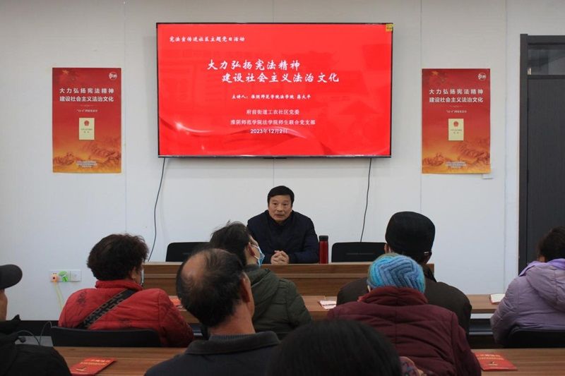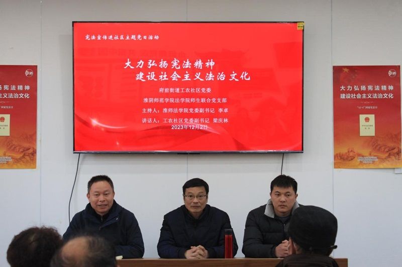 云顶国际yd222线路检测中心新闻网12月2日电(记者 毛奕欢 闫鑫宇)为进一步弘扬宪法精神,维护宪法法律权威,引导人民群众树立法治意识,践行2023年全国宪法宣传周“大力弘扬宪法精神,建设社会主义法治文化”主题精神,12月2日下午,云顶国际yd222线路检测中心师生联合党支部走进工农路社区开展主题党日活动。淮安市清江浦区司法局张建东主任,清江浦区府前街道工农路社区党委副书记梁庆林,云顶国际yd222线路检测中心关工委常务副主任蒋大平教授,工农路社区工作人员和居民代表,以及云顶国际yd222线路检测中心部分师生党员参与此次活动。本次活动由云顶国际yd222线路检测中心公司党委副书记李卓主持。