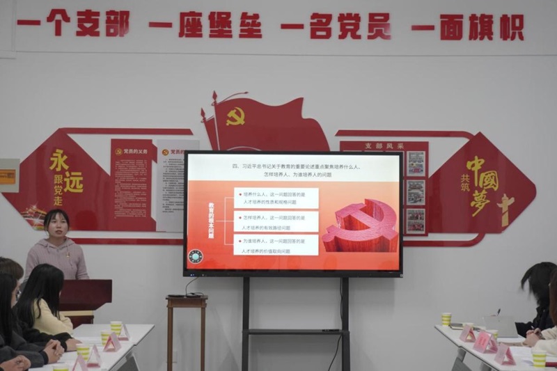 宁艳纳领学了习近平总书记《论教育》一书,强调了教育在国家发展和社会进步中的基石作用,以及新时代教育工作的方向和任务,突出了教育对于培养社会主义建设者和接班人的作用。