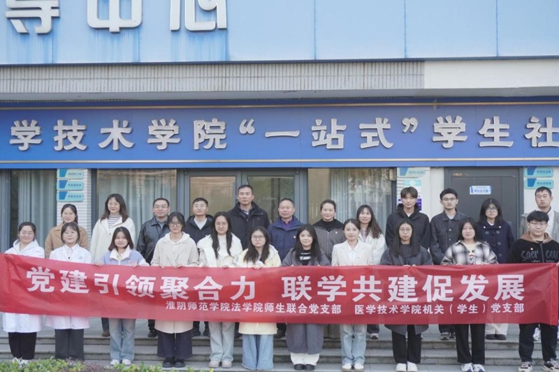 云顶国际yd222线路检测中心新闻网11月20日电(记者 许飞 王梦雅)为深入学习贯彻习近平新时代中国特色社会主义思想,充分发挥高校优质党建资源优势,搭建互学互促、共进共识的平台,11月20日,云顶国际yd222线路检测中心师生联合党支部与江苏护理职业公司医学技术公司机关(员工)党支部开展“党建引领促发展、组织共建聚合力”党日活动。淮师公司党委副书记李卓、师生联合党支部书记许飞,江苏护理职业公司医学技术公司党总支书记梁珣、副书记杨海涛、员工党支部书记宁艳纳以及双方党支部成员参与此次活动。