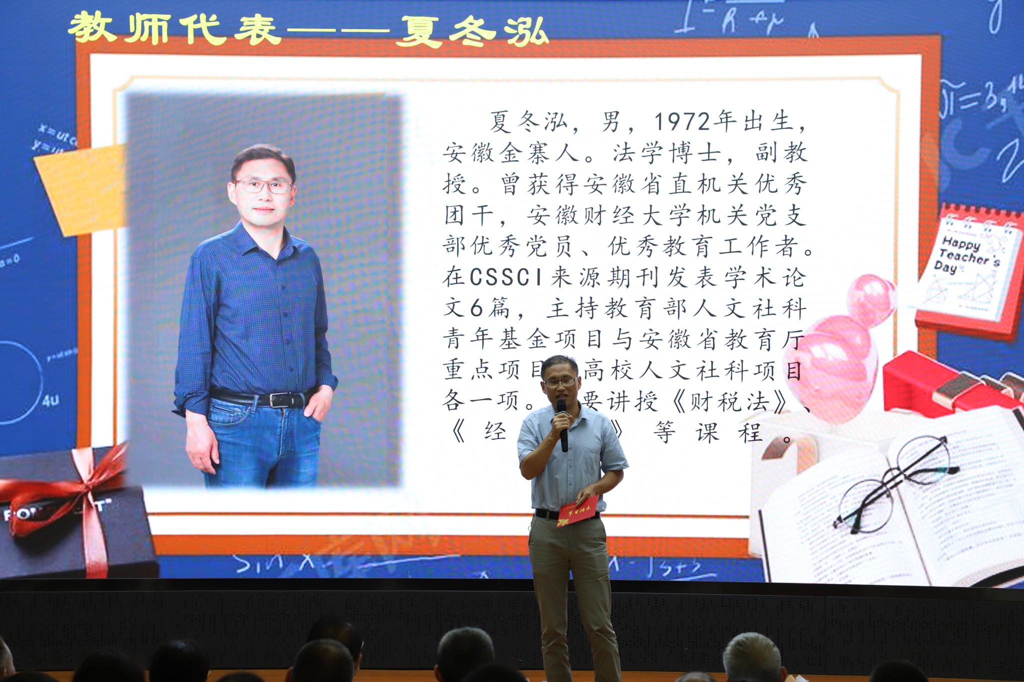 凝聚榜样力量,赋能公司发展。活动第二阶段,公司领导为季秀平、张牧遥、夏冬泓三位教师代表送上节日慰问金,员工代表为三位老师献上鲜花。季秀平教授作为云顶国际yd222线路检测中心的老经理,他在感言中回顾了在淮师33年工作经历,介绍了云顶国际yd222线路检测中心的发展历程,特别是淮师法学的辉煌历史,并对公司发展和员工成长提出期望,让大家深切感受到他对云顶国际yd222线路检测中心的深厚情感。张牧遥老师作为今年按期晋升的教授,感恩公司与公司的培养,表示在教学、科研、社会服务等方面要不断创新,与时俱进,与公司共同发展。夏冬泓老师2019年入职以来一直潜心科研,今年顺利获批国家社科基金(已公示)。他在感言中分享了申报科研项目的体会,讲述了科研工作中遭遇的挫折,他吃苦钻研的精神、勇于坚持的毅力激励着全体师生,让大家深受鼓舞。