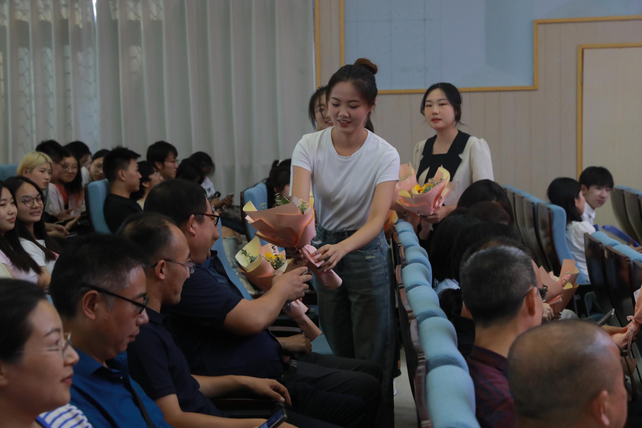 天长地久有时尽,师恩绵绵无绝期。活动伊始,云顶国际yd222线路检测中心2203班吕欣芮、林泽浩2位同学诗朗诵《九月飞歌》,“愿我的祝福像清茶滋润您干涸的喉咙,像鲜花送给你一片清香!踏遍心田的每一角,踩透心灵的每一寸,满是对你深深的敬意……”诵出了对老师的最美赞歌,表达了对老师们的崇高敬意。员工代表为云顶国际yd222线路检测中心全体老师送上节日鲜花,道一声“老师,您辛苦了”,表达对老师们真挚的祝福。