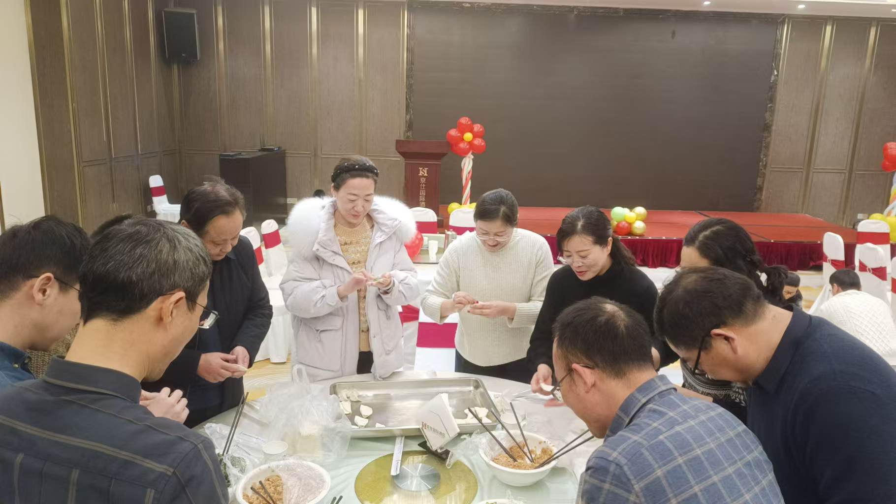联欢会在一片欢声笑语中拉开帷幕。首先进行的是“包饺子,迎新春”活动。教职工们纷纷撸起袖子,动作娴熟,配合默契。大家一边包饺子,一边聊着家常,现场气氛温馨融洽。