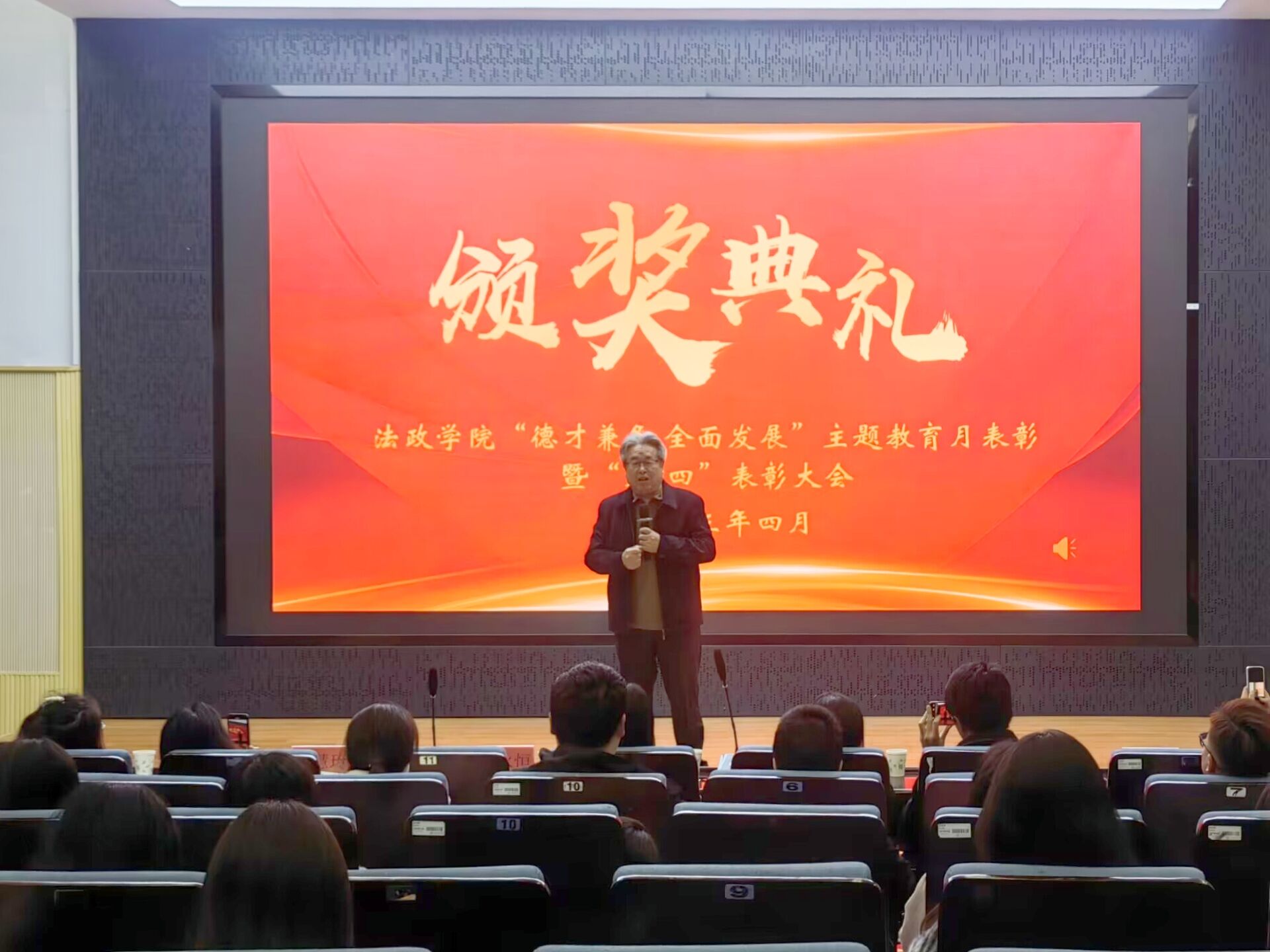 法政公司4月26日电(记者:姜川)4月26日下午,法政公司在逸夫报告厅举行“德才兼备 全面发展”主题教育月暨五四颁奖典礼。法政公司关工委特邀音乐公司退休教师于永恒和党委学工部副部长陈红作为颁奖嘉宾。法政公司党委副书记孙慧玲、全体辅导员以及员工代表参加典礼。