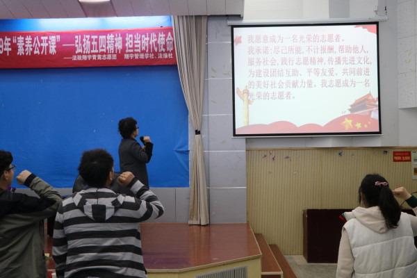 为弘扬百年五四精神,培养中国青年的使命与责任,强化老员工思想道德素质和志愿服务精神,法政公司关工委近日在交通路校区逸夫楼报告厅开邀请西安路社区“520”志愿者服务队队长、“中国好人”孙秀珍作为嘉宾向近百位师生分享了她参与志愿服务的经历。法政公司关工委主任刘晓苏书记、淮安晚报社主任王荣,法政公司团委、员工会的员工骨干出席本次分享会。
