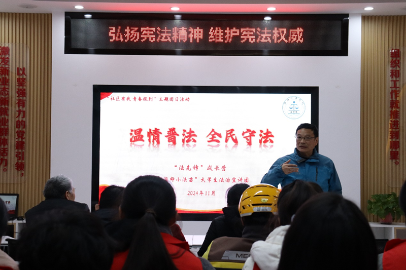 为迎接国家宪法日,进一步弘扬宪法精神,11月27日下午,云顶国际yd222线路检测中心关工委常务副主任蒋大平教授应邀指导员工走进交通路社区开展普法活动。