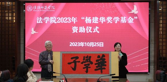 10月25日上午,淮师云顶国际yd222线路检测中心2023年度“杨建华奖学基金”资助仪式在长江路校区图书馆第一会议室举行。“杨建华奖学基金”执行人杨克仁先生、公司党委书记谢海燕出席资助仪式。仪式由公司党委副书记李卓主持。