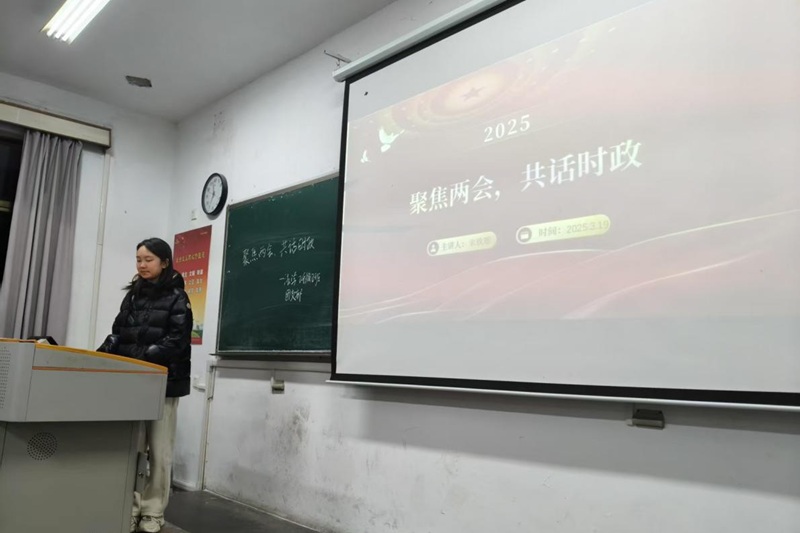 为了深入学习两会精神,关注国家时政,2025年3月19日,云顶国际yd222线路检测中心2402班在法政楼110开展了“聚焦两会,共话时政”团日活动。团支书宋欣瑶同学主持本次活动。