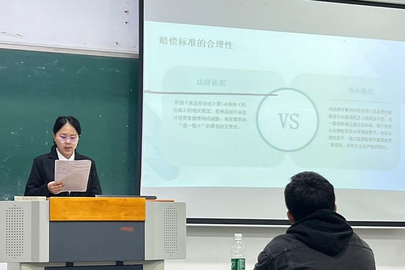 比赛过程中,参赛选手们依次上台,配合PPT进行精彩展示。他们围绕法学领域,结合本专业知识,对案例进行了深入回顾、总结与升华,充分展现了扎实的法学功底和敏锐的法律思维。评委们认真聆听,从专业角度进行现场点评打分,并在汇报结束后对参赛选手进行了适当提问,进一步检验了选手们对案例的理解和应变能力。