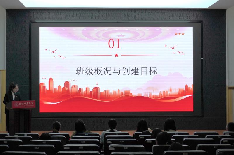 在评选活动现场,十二个参评班级依次登台展示“创周”成果。各参评班级借助PPT、视频等多媒体形式,系统展示了在思想建设、学风建设、社会实践、学术竞赛等方面的创建成果,彰显了各具特色的班级风貌,拓宽了创建活动的覆盖面和影响力。