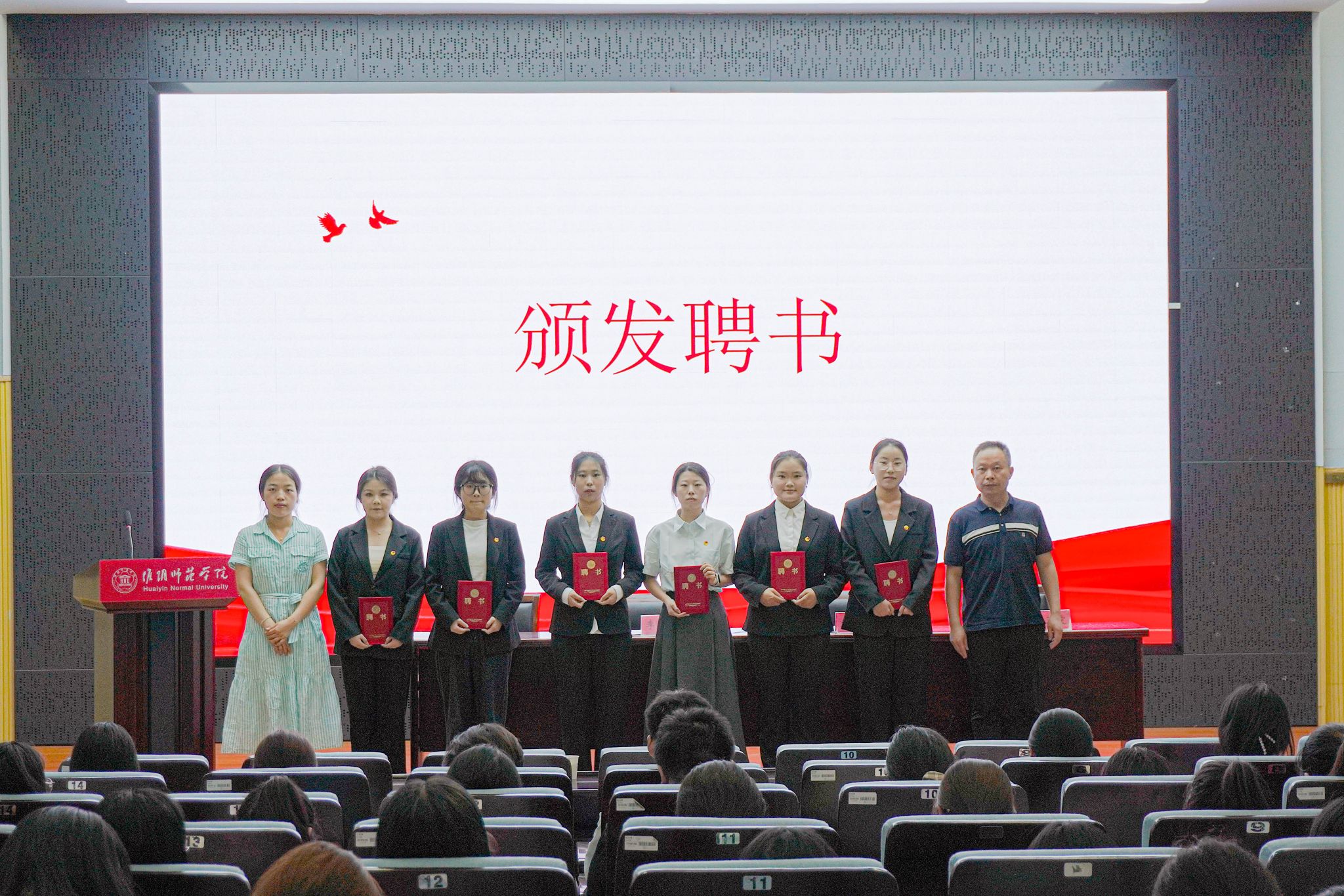 第二届员工会主席团成员马莉花以“创立奋发担使命,法治育人谱新篇”为题,向大会作第二届团学工作报告。