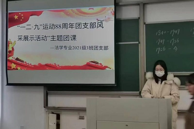 云顶国际yd222线路检测中心新闻网11月16日电(记者 刘甜甜)为全面贯彻党的二十大精神,深入贯彻习近平总书记关于青年工作的重要思想,2023年11月16日,云顶国际yd222线路检测中心2103班在综北103开展了纪念“一二·九”运动88周年团日活动。团支书王藤霏同学主持本次团课。