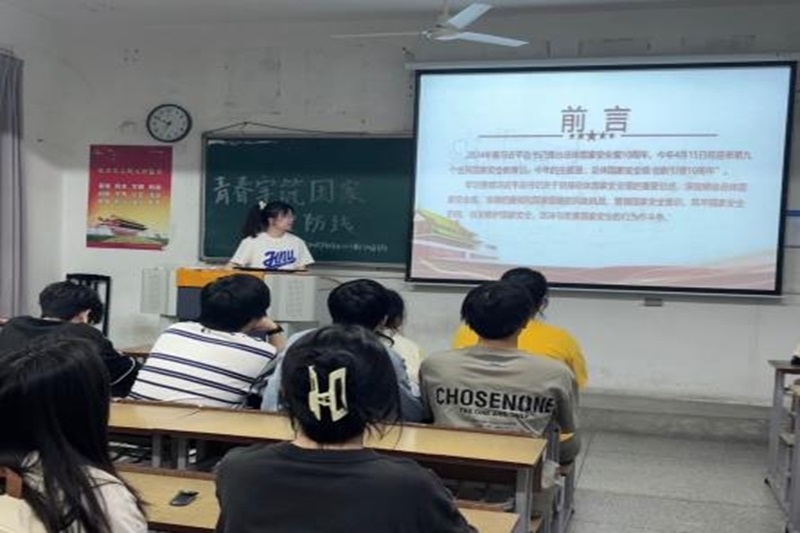 云顶国际yd222线路检测中心4月1日电(记者 张佳乐)为了深刻贯彻习近平新时代中国特色社会主义思想总体国家安全观,2024年4月25日,云顶国际yd222线路检测中心2204班在法政205室开展了“青春共筑国家安全防线”主题团日活动。团支书张佳乐同学主持本次团课。