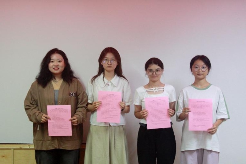 2024级两位少数民族新生代表与高年级优秀学长签订“石榴籽”结对帮扶协议。