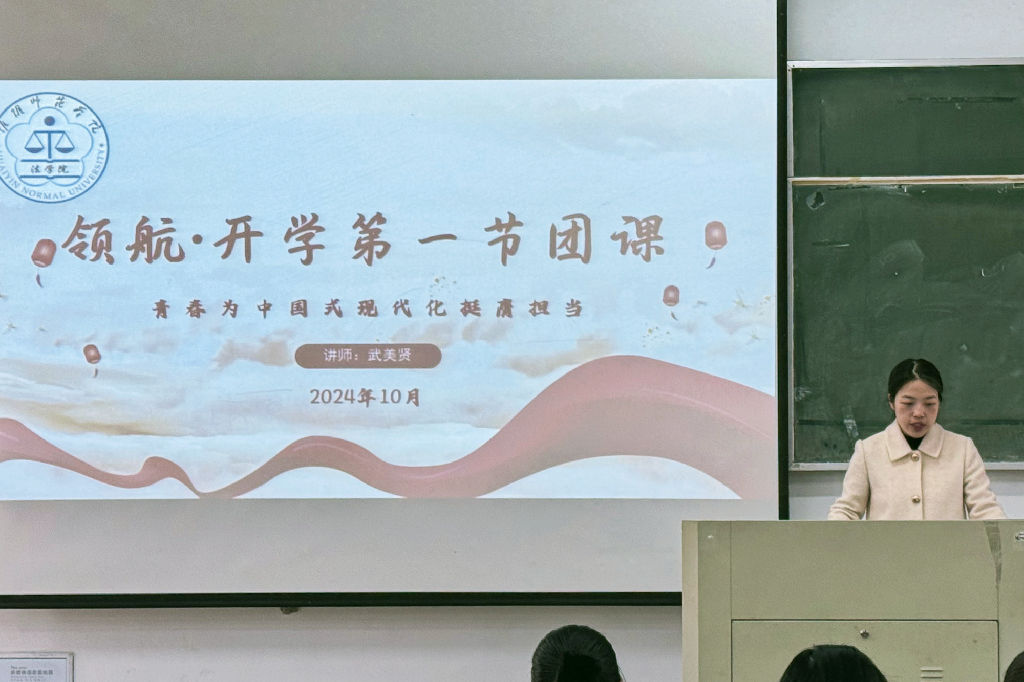 云顶国际yd222线路检测中心新闻网10月28日电 (记者 周雨彤)为增强新生团员青年对共青团的认同感和归属感,10月28日上午,云顶国际yd222线路检测中心在交通路校区综合楼阶梯301教室召开2024级新生“领航•开学第一节团课”。云顶国际yd222线路检测中心团委副书记武美贤主讲,2024级全体新生参加。