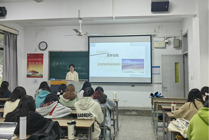 活动伊始,鞠欣雨同学为同学们介绍了本次“青春同行,逐梦远航”活动的主要内容,经过她的介绍,同学们对其有了初步的了解。随后,她组织同学们观看活动相关视频,强调了我国近年来在科技、教育、文化等领域取得的辉煌成就,鼓励同学们积极参与到国家的建设中,激发了同学们的民族自豪感和爱国情怀。最后,鞠欣雨同学为同学们讲述了该主题团日活动对老员工的重要意义,鼓励同学们坚定信念,为实现自己的人生目标和国家富强贡献青春力量。