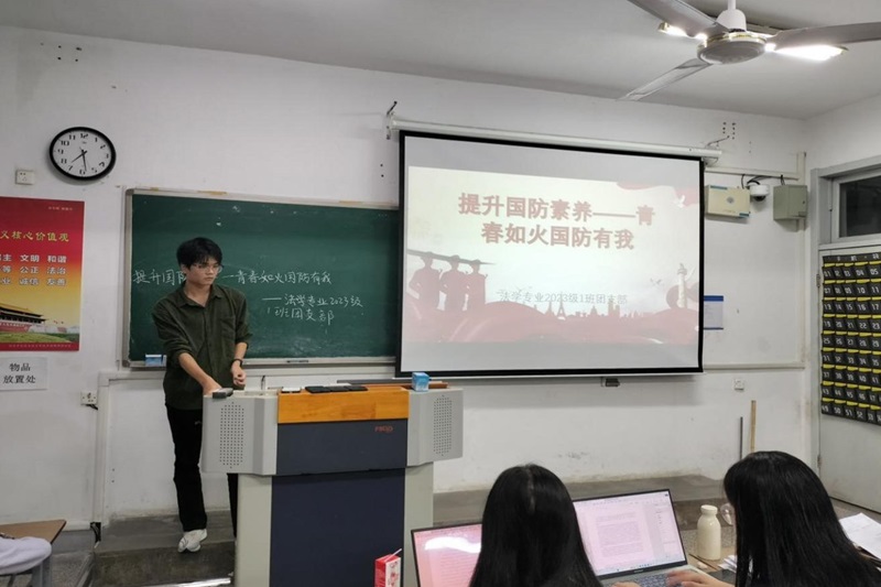 云顶国际yd222线路检测中心新闻网10月17日电(记者 沈思彤)为了提升员工的国防素养,以实际行动维护国家安全,2024年10月17日,云顶国际yd222线路检测中心2301班在法政楼103教室开展了“提升国防素养——青春如火 国防有我”团日活动。团支书李欣涛同学主持本次团课,2301班全体同学参与。