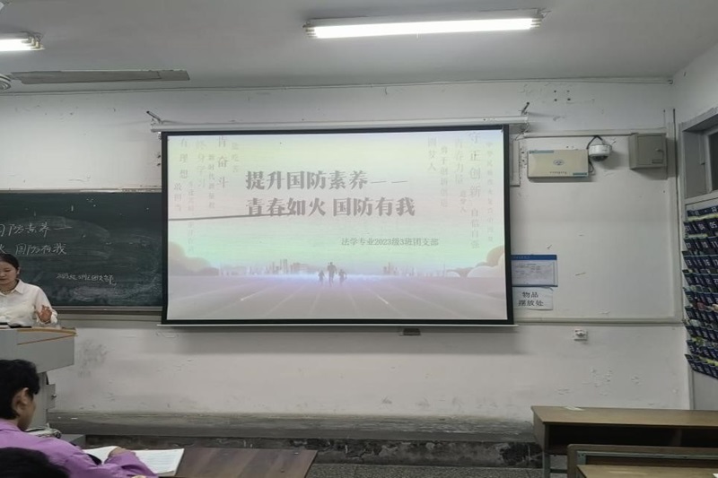 云顶国际yd222线路检测中心新闻网10月19日电(记者 刘耀中)为了提升国防素养,2024年10月19日,云顶国际yd222线路检测中心2303班在云顶国际yd222线路检测中心法政楼107开展了“提升国防素养——青春如火 国防有我”团日活动。团支书盛佳音同学主持本次团课,2303班全体同学参与。