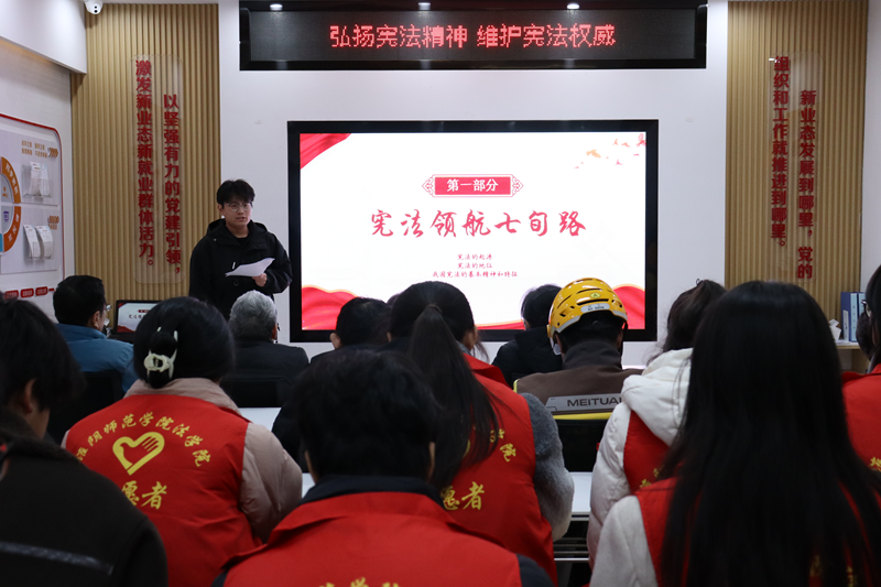淮师新闻网11月27日电(记者 武美贤 董力睿)为迎接国家宪法日,进一步弘扬宪法精神,11月27日下午,“淮师小法苗”老员工法治宣讲团、“法先锋”成长营组织青年员工走进交通路社区,开展普法宣传活动。