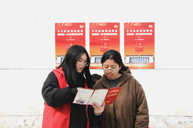 法缘社成员走进员工社区向同学们介绍国家宪法日,普及宪法知识。