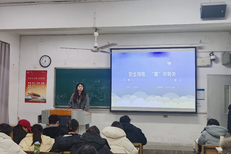 为了让同学们对在宿舍里安全用电有更深入的了解和更全面的认识,2024年12月10日,法学专业2022级3班团支部在法政楼208开展了“安全用电 ‘寓’你有关”主题团日活动。副团支书王新灿主持本次活动。