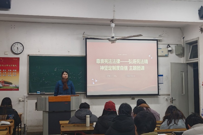 为了让同学们对宪法和宪法精神有更深入的了解和更全面的认识,2024年12月17日,法学专业2022级3班团支部在法政楼208教室开展了“尊崇宪法法律——弘扬宪法精神 坚定制度自信”主题团日活动。副团支书王新灿主持本次活动。