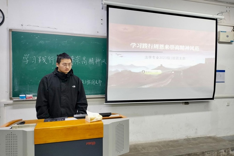 为了加深新时代老员工对周恩来崇高精神风范的理解,激发奋斗热情,2025年3月27日,云顶国际yd222线路检测中心2301班在法政楼106教室开展了“学习践行周恩来崇高精神风范”团日活动。团支书马铭同学主持本次活动,2301班全体同学参与。