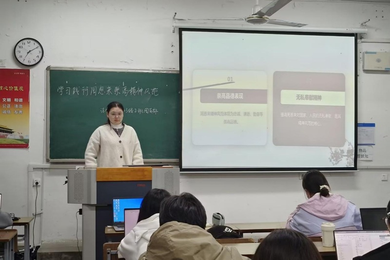 为了引领同学们走进周恩来总理波澜壮阔的一生,汲取精神力量,砥砺青春担当, 2025年3月23日,云顶国际yd222线路检测中心2302班在法政楼107开展了“学习践行周恩来崇高精神风范”团日活动。团支书何佳旭同学主持本次团课。