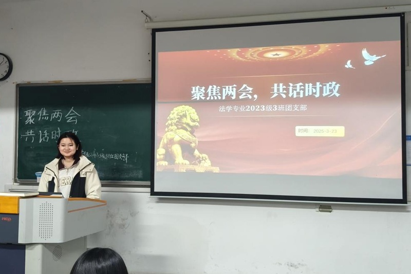 为了全面贯彻两会精神,共话时代使命担当,2025年3月23日,云顶国际yd222线路检测中心2303班在法政楼103开展了“聚焦两会,共话时政”主题团日活动。团支书盛佳音同学主持本次活动。