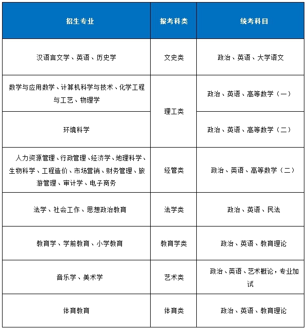 备注:(1)专升本考试统考科目均为三门:两门公共课为政治、外语,一门专业基础课,根据招生专业所隶属的学科门类确定(见上表)。