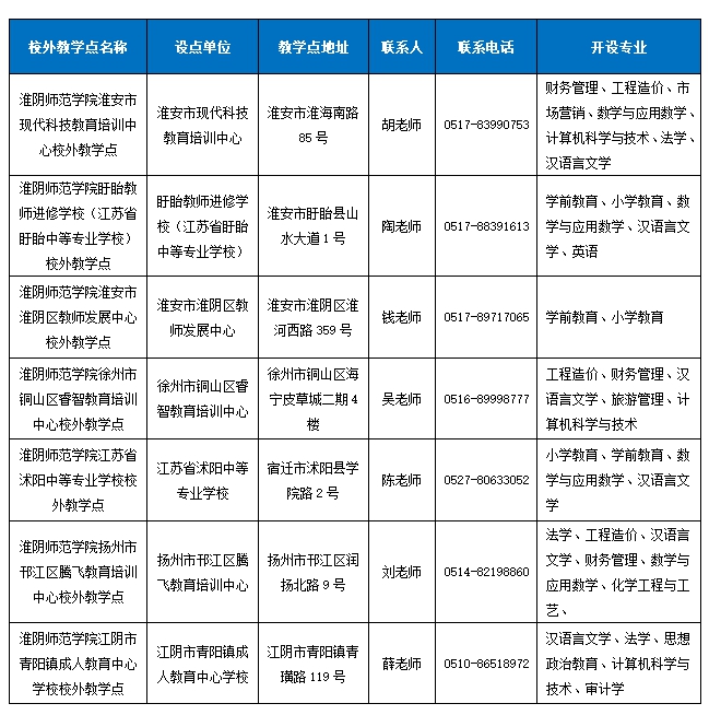 备注:以上拟招生校外教学点及专业以江苏省教育考试院公布实际招生信息为准。
