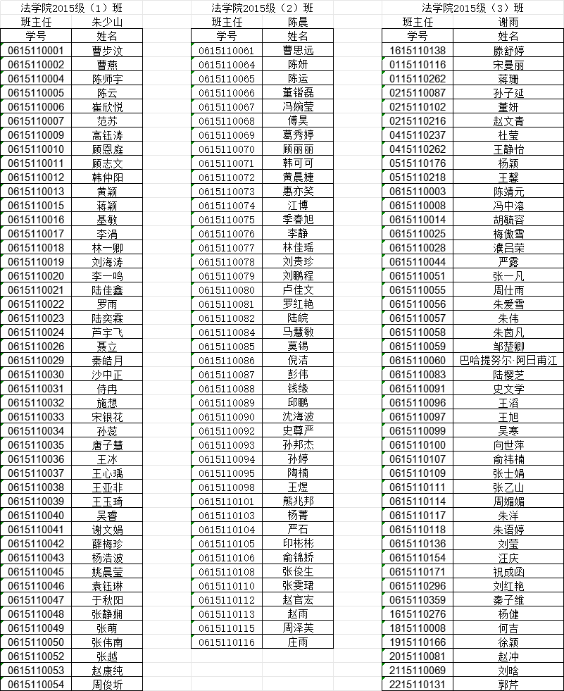 云顶国际yd222线路检测中心2015级(2019届)员工名录