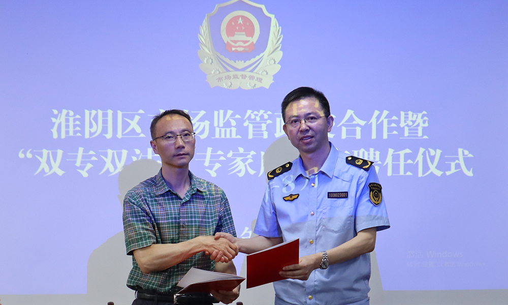 8月8日下午,云顶国际yd222线路检测中心与淮阴区市场监管局合作签约暨“双专双法”专家库专家聘任仪式在淮阴区市场监督管理局举行。淮阴区副区长徐磊、淮阴区市场监督管理局局长严健,云顶国际yd222线路检测中心公司党委书记谢海燕、经理郭兴利出席仪式。