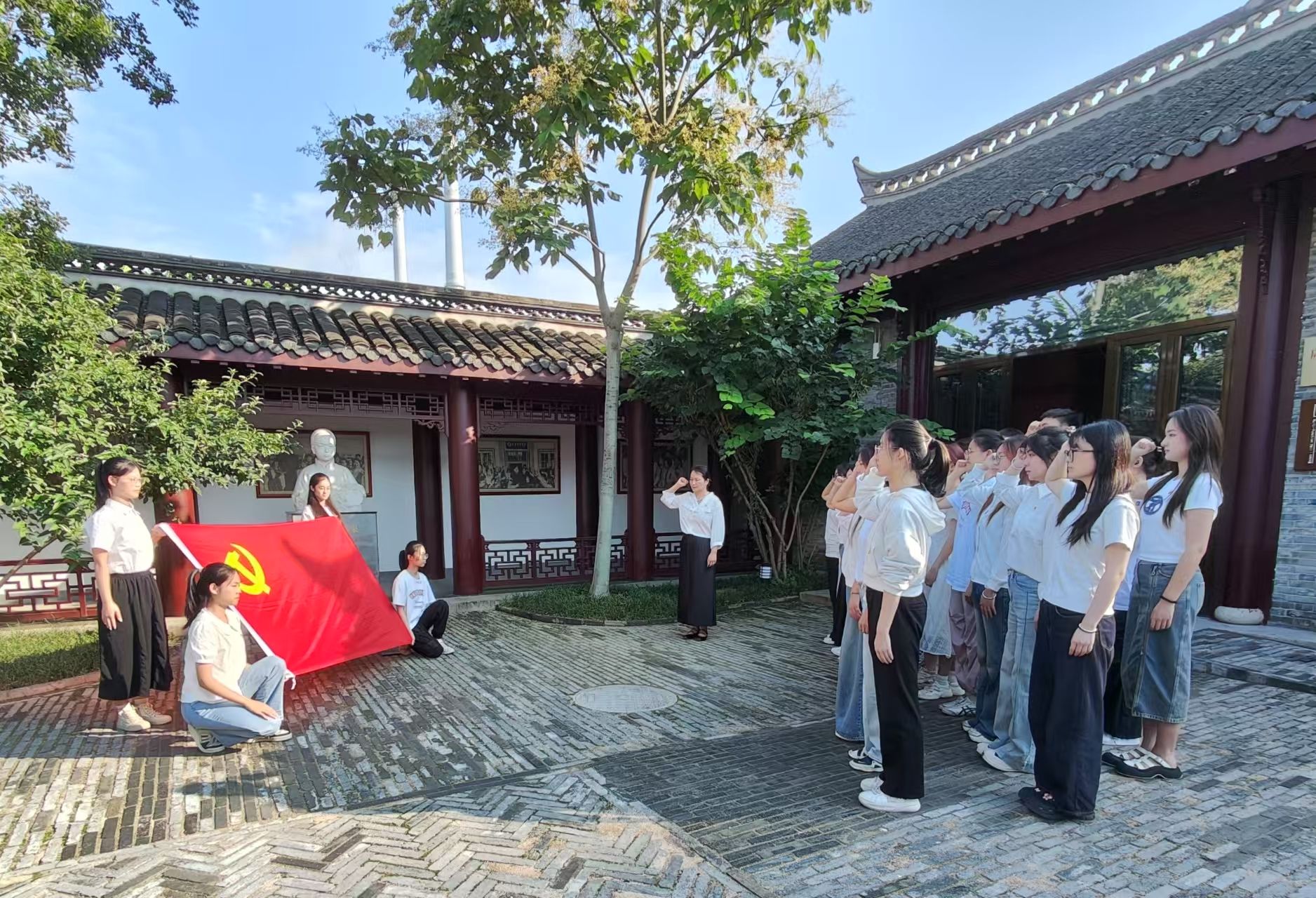 最后,全体预备党员在领誓人梁珣带领下,面向鲜红党旗高举右拳,铿锵誓言响彻庭院,字字千钧的承诺彰显着新时代青年党员永葆忠诚的坚定信念。