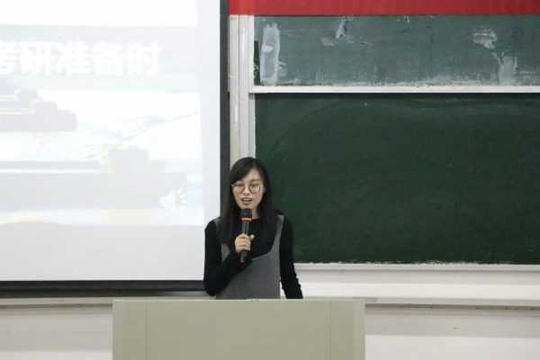 首先是由考取了上海师范大学小学教育专业研究生的徐佩佩同学为大家作经验分享,她指出:“英语方面,阅读是王道,把考研分为三个阶段,一步一步走向胜利。”为同学们考研英语复习给了方法上的指导。“考研贵在坚持。”这是陆宇同学发自肺腑的感慨。“行百里者半九十,考研途中容不得半点松懈。”几位同学慷慨激昂的陈词让在座的同学深受感染,鼓足了考验的动力。随后邵逸仙,张婷,汪婉玉,柴佳慧几位同学也分享了自己考研路上的故事以及一些心得。