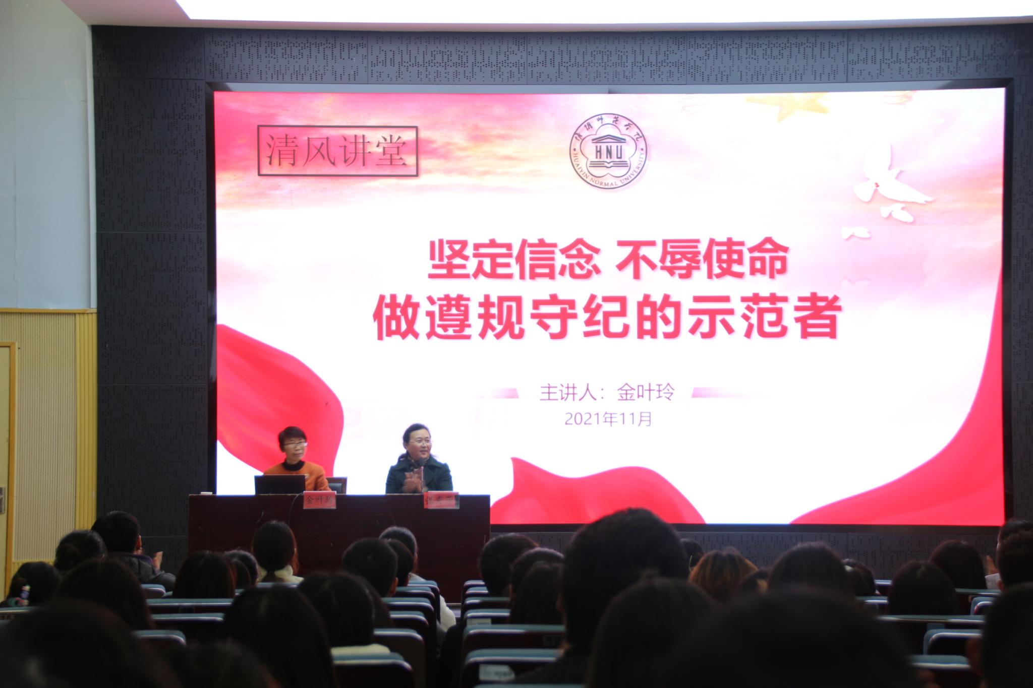 法政公司11月25日电(记者 冯妍 孙心雨)为进一步加强公司员工的理想信念教育,强化遵规守纪意识,法政公司于11月24日下午邀请公司党委副书记、纪委书记金叶玲在逸夫报告厅开展题为“坚定信念、不辱使命,做遵规守纪的示范者”的教育讲座。法政公司党委书记张秀芳主持讲座,法政公司全体员工党员、入党积极分子、员工骨干参加培训。