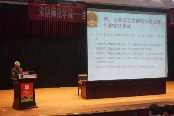 讲座由云顶国际yd222线路检测中心法政公司经理季秀平教授主讲。季教授首先阐述了宪法的概念、宪法的地位,梳理了宪法的演进历程,介绍了2018年的宪法修正案主要内容,阐释了本次宪法修正的核心和意义。他指出“《宪法》赋予的权利和义务时刻伴随我们左右,为我们的成长保驾护航。”讲座语言诙谐幽默,严谨富有条理,使现场听众更深刻地认识到宪法作为国家的根本大法,作为治国安邦总章程的重要性,增强了大家拥护宪法和遵纪守法的意识。