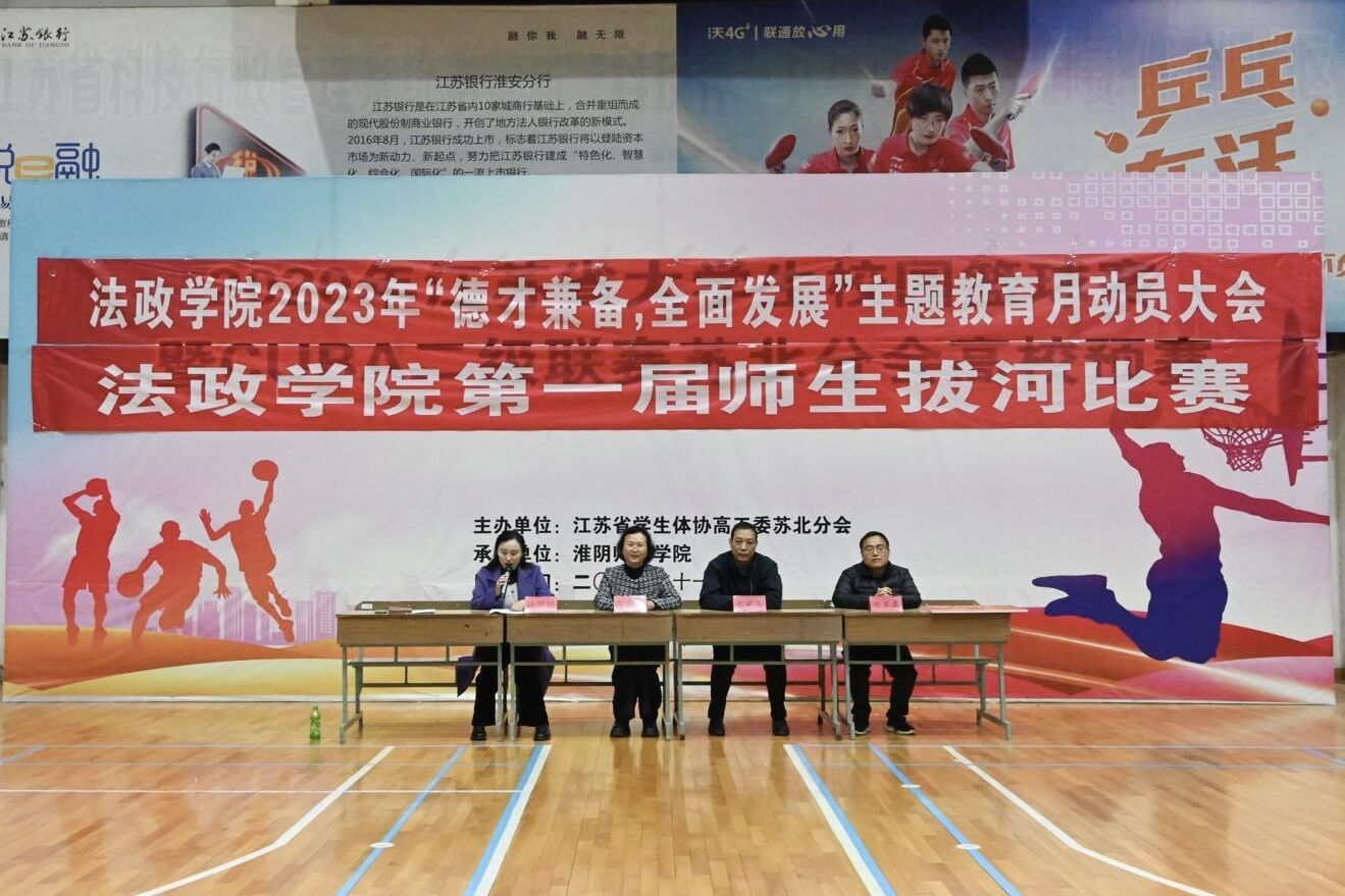 法政新闻3月22日电(记者 雷鑫 杨静 唐昕)力拔山河,“绳”彩飞扬;一绳为契,初心不忘。3月22日下午,法政公司 “德才兼备 全面发展”师生联谊拔河比赛在体育馆举办,同步启动“德才兼备 全面发展”主题教育月活动。动员会由公司党委副书记孙慧玲主持,公司党政领导、班主任、辅导员、全体员工参加。