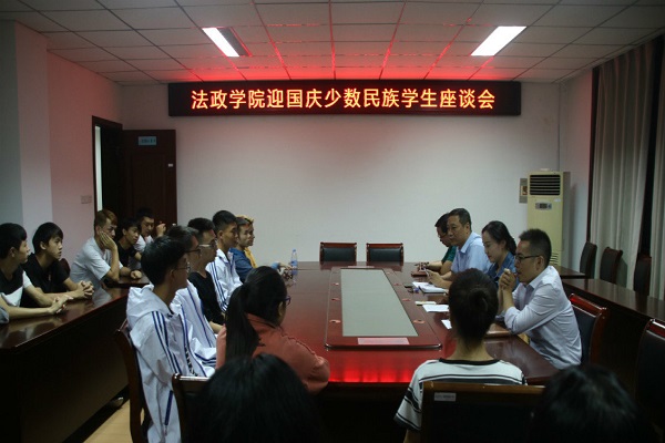 法政新闻9月27日电(记者 蒋雨鸥)为庆祝中华人民共和国成立69周年,加强与少数民族员工的交流与沟通,9月26日下午,法政公司举办“迎国庆”少数民族员工座谈会。法政公司公司党委副书记(主持工作)刘晓苏主持座谈会。公司党委副书记孙慧玲、学工办副主任、辅导员、少数民族员工代表参加座谈会。