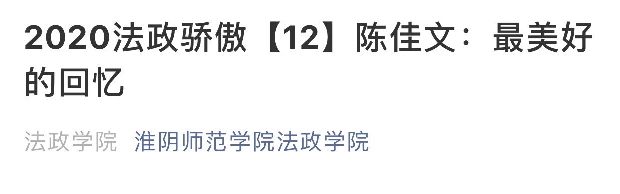 【主题教育月】2020法政骄傲【12】陈佳文:最美好的回忆