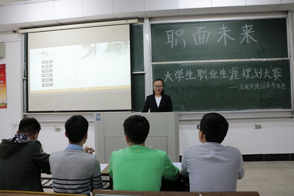 法政新闻5月8日电(记者孙娴 蒋雨鸥)为了帮助同学们了解所学专业及其就业前景,使同学们认识到职业规划的重要性,2018年5月6日下午三点,法律政治与公共管理公司团委员工会于综南103教室隆重举办“老员工职业生涯规划大赛”。本次比赛请来了胡明哲、张翰、鲁思竹、方勇、周超等几位同学担任评委,对2017级新生进行职业规划指导。