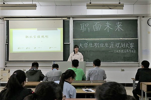 赛前现场气氛紧张激烈, 选手们都充分投入准备状态。比赛正式开始,参赛选手结合自己精心设计的PPT从自我认识、职业认知、环境分析、职业生涯规划、制定行动策略、计划修正与备选方案等不同方面进行阐述,评委们则根据同学们的阐述以及规划方案设计进行提问。整个比赛过程紧张有序,同学们的职业生涯规划设计结构完整、逻辑清晰、条理清楚、详略得当、重点突出,职业生涯目标制定贴切合理,演讲生动诙谐且极富有感染力。经过两个小时的激烈角逐,本次大赛取得了圆满成功。
