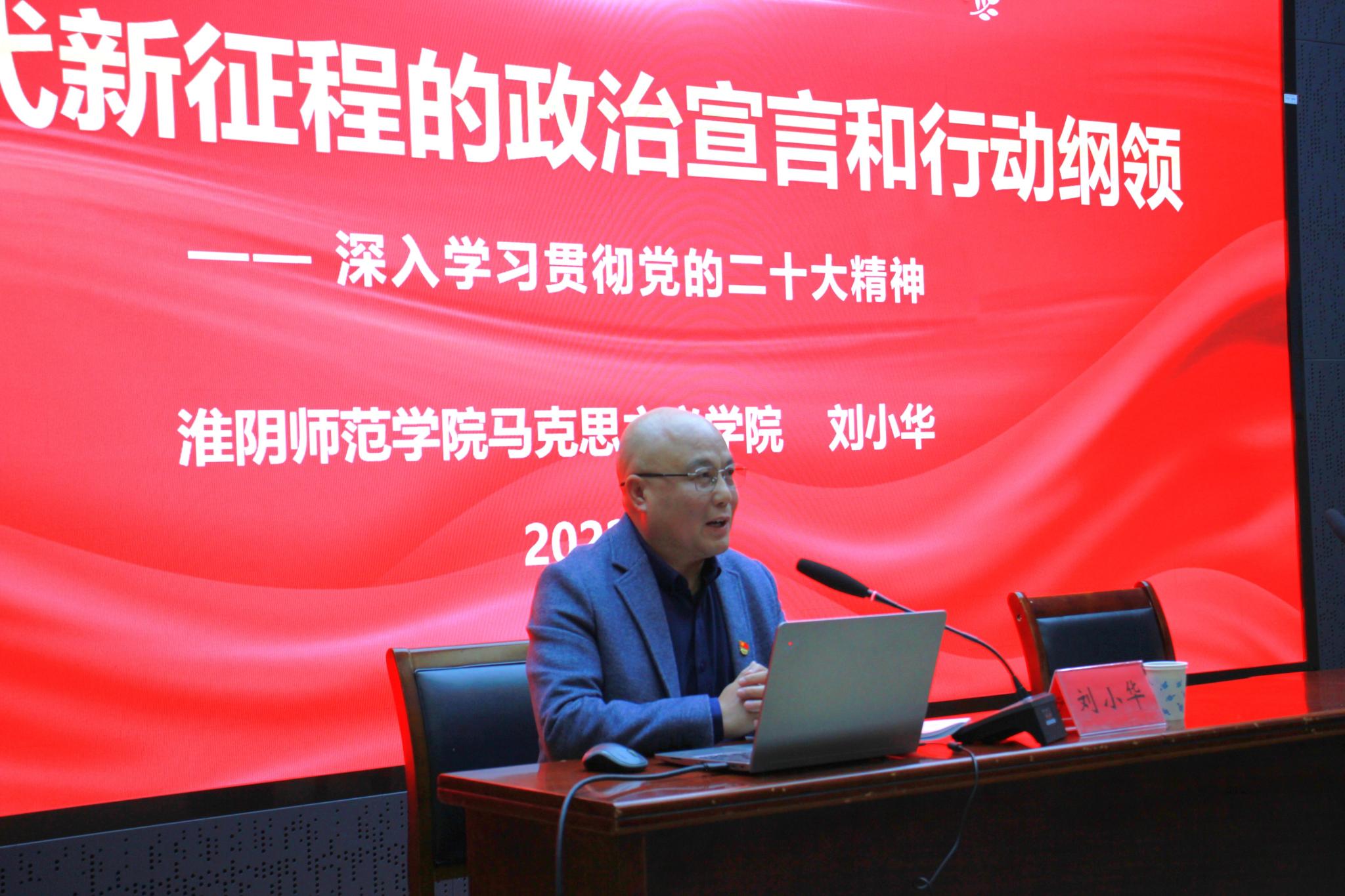刘小华从“深刻把握党的二十大的重大意义”“深刻把握过去五年的工作和新时代十年的伟大变革”“深刻把握开辟马克思主义中国化时代化新境界的历史责任”“深刻把握以中国式现代化推进中华民族伟大复兴的使命任务”“深刻把握全面建设社会主义现代化国家的目标任务”“深刻把握以伟大自我革命引领伟大社会革命的重要要求”等方面对党的二十大精神作了系统梳理和全方位解读。他强调,要认真学习领会党的二十大精神,紧密团结在以习近平同志为核心的党中央周围,高举中国特色社会主义伟大旗帜,全面贯彻习近平新时代中国特色社会主义思想,坚定信心、同心同德,埋头苦干、奋勇前进,为全面建设社会主义现代化国家、全面推进中华民族伟大复兴而团结奋斗!宣讲报告主题鲜明、内容丰富,为广大师生深刻理解、全面把握党的二十大精神提供了权威辅导。