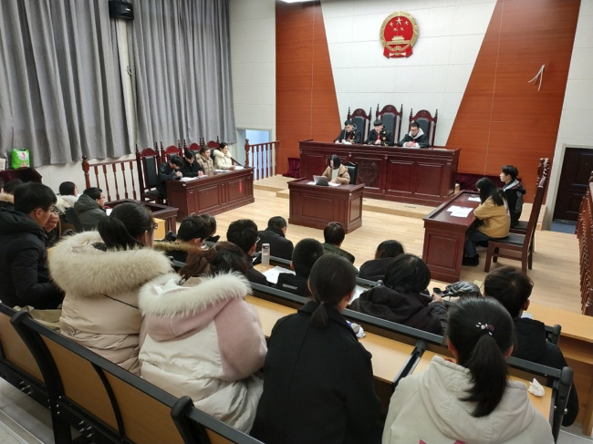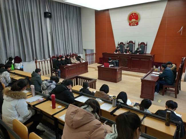 1月16日,法政公司在模拟法庭举办2017级模拟法庭比赛,本次比赛系实践周课程之一。2017级法学、知识产权专业3个班先班级内部初选,选出1个代表队参加比赛。金伟、徐凤利、赖秀兰3位老师担任评委。