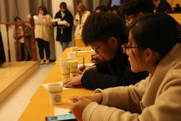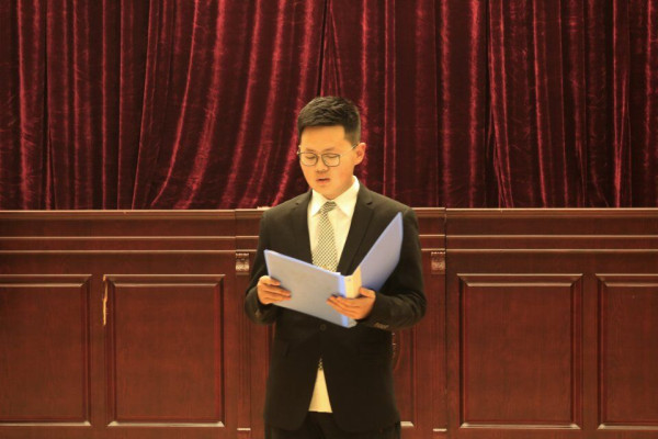 法政新闻3月12日电(记者 宋青青 高嘉欣)为引导全院员工学习、践行周恩来精神,全面把握习近平新时代中国特色社会主义思想的深刻内涵。3月11日晚,法政公司于模拟法庭举行“勤学修德 明辨 笃实”主题演讲比赛。2018级100多名的法学专业员工观看本次演讲比赛,比赛在同学们的热烈掌声中拉开帷幕。