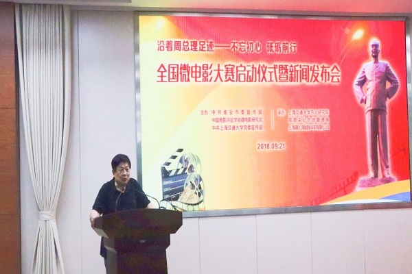 接着,中国电影评论学会副会长、微电影研究会会长李建强先生介绍大赛的活动情况,包括时间,参赛人群、地点,奖项设置等。上海联红网络科技有限公司董事长张明生发表讲话表示一定用公司的全部技术全力支持此次活动。