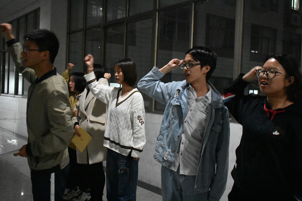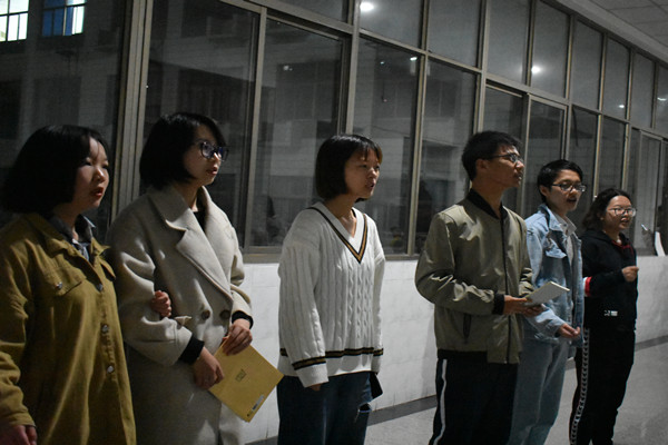 在活动前期,40多名同学分成8个小组,分别按小组编写自己的剧本,力求剧本内容积极向上,符合淮师精神,围绕主题教育月,有趣、富有情感、贴近生活。入围剧本共有5篇,其中又以高洋组的剧本《招聘》最为新奇有趣还能反应社会现状,引起我们反思。