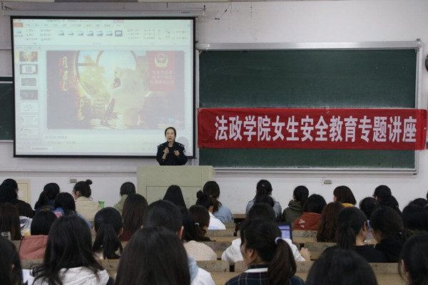 图为法政公司开展女生安全教育讲座 记者 蒋雨鸥 摄
