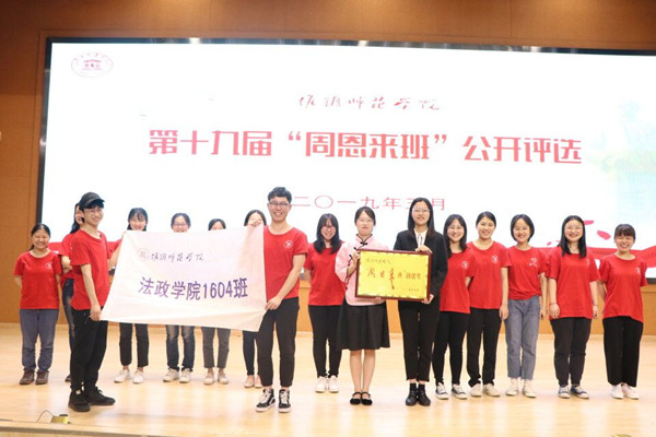 最终,法政公司1604班获得“周恩来班创建奖”,虽与“周恩来班”的荣誉失之交臂,但他们一定会在未来的一年中继续努力,向这个荣誉称号继续进发。法政学子一定会以满腔热忱和一颗上进的心努力创建“周恩来班”,秉承“坚守朴实,追求崇高”的校训,为实现中华民族伟大复兴的中国梦而奋斗!
